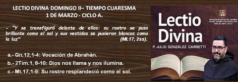 - DOMINGO 1 DE MARZO, II° DE CUARESMA LECTIO DIVINA. P. JULIO GONZÁLEZ CARRETTI OCD.